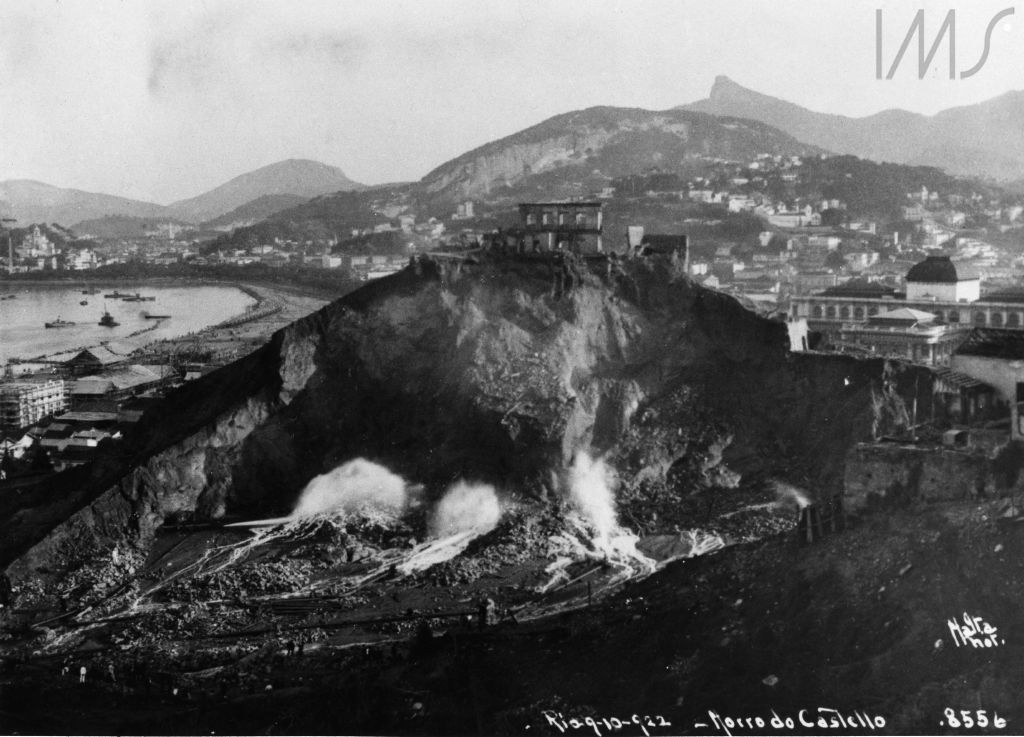 Jatos d’água colaboram no desmonte do morro do Castelo, 1922