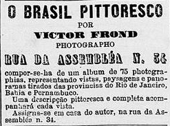 Foi anunciada a exposição das fotografias de Frond que integravam o Brasil Pitoresco, na casa do sr Bernasconi (Correio Mercantil , de 10 de setembro de 1859, na primeira coluna).