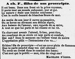 1859 – O escritor Machado de Assis (1839 – 1908) foi o único brasileiro presente em uma reunião na casa de Frond para celebrar o nascimento de seu primeiro filho com Julie Charlotte Lacombe, Charles Victor Marius Frond, nascido em 4 de janeiro. Ribeyrolles escreveu um poema intitulado Souvenirs d’Exil para saudar o menino, traduzido imediatamente por Machado. Estavam, na casa de Frond seus amigos Boulangier, Joseph Lacombe, Dr. H. Chomet, A. Lemâel, Leonce Aubé, Vieu, Pailleux, Salaberry, Massy e B. L. Garnier. Meses mais tarde, Machado de Assis publicou, no Correio Mercantil, seus primeiros versos em francês, prestando nova homenagem ao pequeno Charles Frond, no poema intitulado A Ch. F., filho de um proscrito (Correio Mercantil, 21 de julho de 1859, quarta coluna).